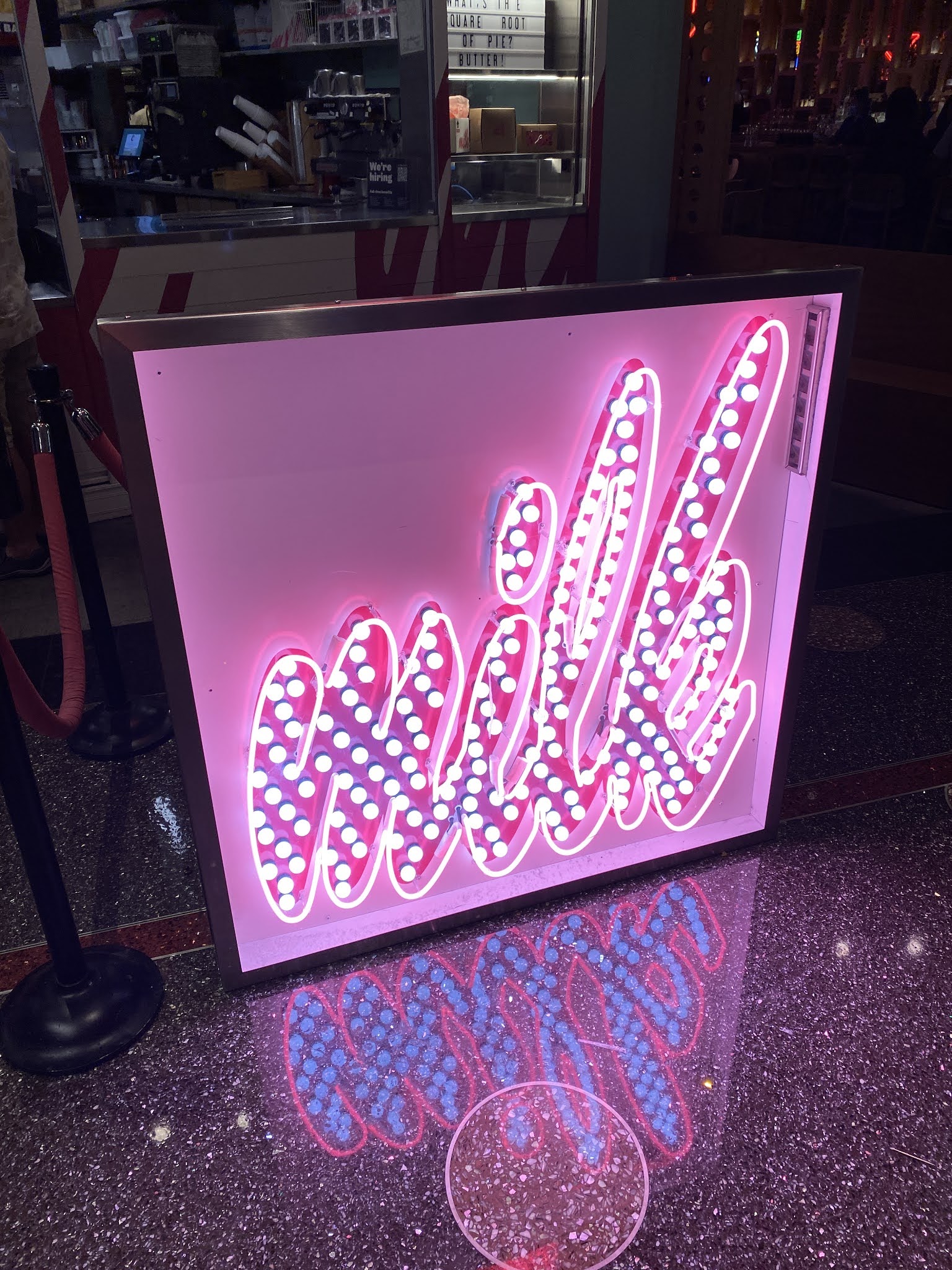 The Cosmopolitan Casino and Hotel is new since my last trip. It is quite high end and posh. I enjoyed visiting it several times this trip. It's between the Bellagio and Aria. It's a fun place to walk around day and night (we went back several times, it's also a good place to "cut through" when walking down the strip). The Block 16 Urban Food Hall is on the 2nd level, and has lots of cool places. We opted to share a milkshake at Holsteins. This is a Smore's shake. The graham cracker crumble on the outside of the glass was a nice touch!